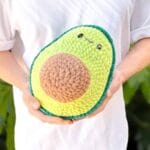 This cuddle-worthy Giant Avocado plushie has a weighted bottom, making it perfect to snuggle with. This pattern is also no-sew – a