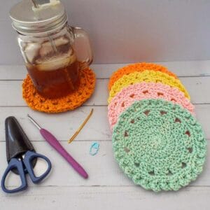 Crocheting coasters is suuuuper easy and fun to make. The fact that you only need small amounts of yarn makes it the perfect way to use up your stash! These are great crochet projects that are quick to finish. These pieces can be made in various vibrant colors, making them ideal for spring and summer home décor. Also, they make great gifts that won’t break the bank or take weeks to complete!