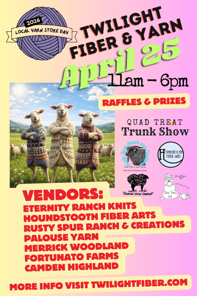 Mark it in your calendars (January 24th) so you don’t miss this awesome event. Two Springs Fiber Arts will be having a TRUNK SHOW!