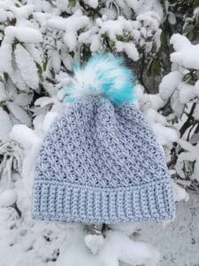 Happy new year everyone! Cheers to 2025! I hope everyone’s year is off to a fantastic start. Let’s begin this month with a brand new crochet design, made by me, Elisa from @stringsandcuddles on IG! Now that the cold winter months have arrived, there’s no better way to stay warm than with a stylish and comfortable headpiece. Allow me to present the Silver Thaw Beanie, my latest creation! The texture that the stitches have created fascinates me. They remind me of the snow and rain because they resemble embossed slanted V’s. Wouldn’t you agree? Now, without further ado, let’s move right on into the pattern!